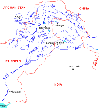 The Indus Waters Treaty (IWT) is a water-distribution treaty between India and Pakistan to use the water available in the Indus River system in the territories of the two countries. The treaty was negotiated by India and Pakistan with the mediation of World Bank, and signed in Karachi on 19 September 1960 by Indian prime minister Jawaharlal Nehru and Pakistani president Ayub Khan. It classifies six major rivers of the Indus Basin into two categories, and gives India control over the waters of the three "Eastern Rivers"—the Beas, Ravi and Sutlej—which have a total mean annual flow of 33 million acre⋅ft (41 billion m3), while control over the three "Western Rivers"—the Indus, Chenab and Jhelum—which have a total mean annual flow of 135 million acre⋅ft (167 billion m3), was given to Pakistan.