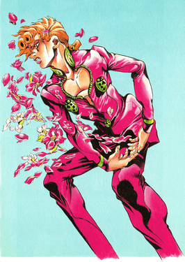 Giorno "JoJo" ("GioGio") Giovanna is a fictional character in the Japanese manga series JoJo's Bizarre Adventure, written and illustrated by Hirohiko Araki. The main protagonist of the series' fifth story arc, Golden Wind, he was born Haruno Shiobana , the illegitimate son of Dio Brando while possessing Jonathan Joestar's body. After being saved by an unknown mafia member in his childhood, Giorno dreams of joining the Italian mafia gang Passione to overthrow its boss, Diavolo, who keeps a very low profile, and close the drug trade, desiring to help the innocent. Joining Bruno Bucciarati and his team, they go on a mission to send Trish Una to her father, the boss of Passione. Giorno possesses a Stand known as Gold Experience , whose primary abilities are to give life to nonliving things, which is mostly used to turn inorganic objects into living organisms, and creating body parts, acting as a healing ability.